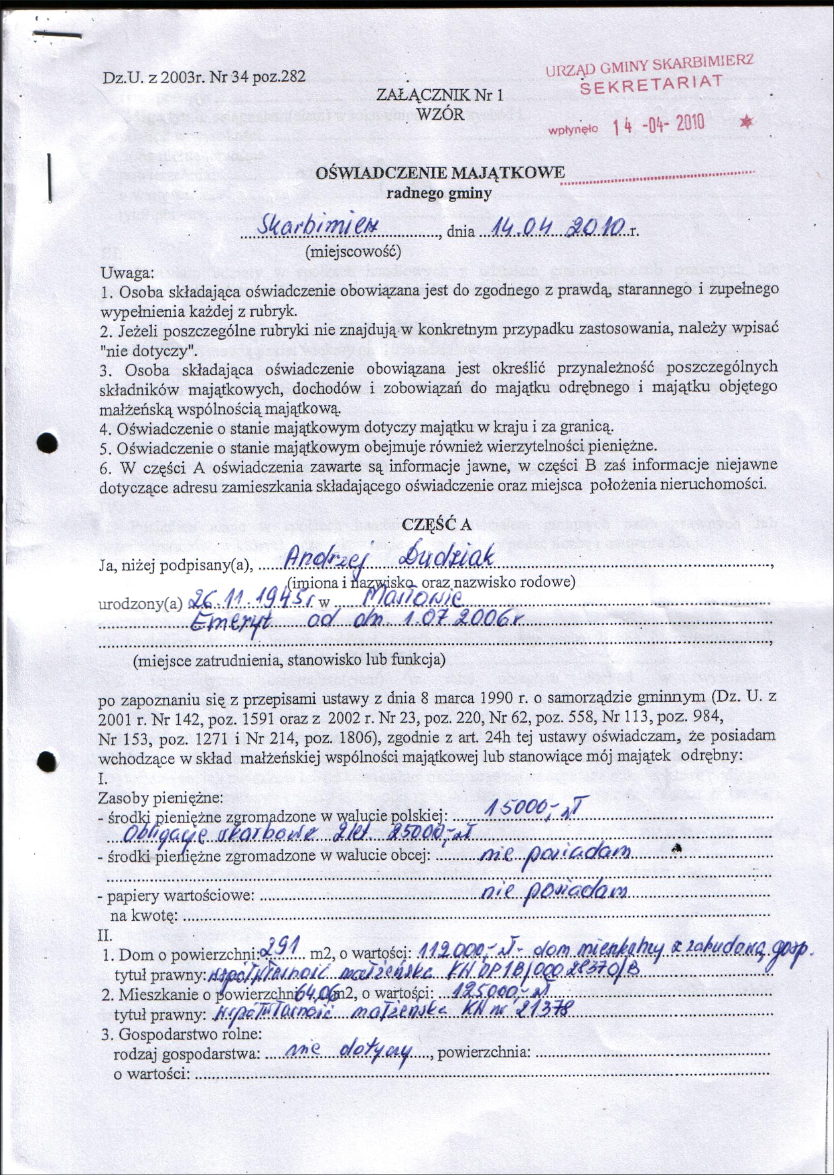 | Nazwa dokumentu: | Oświadczenie majątkowe str.1 |