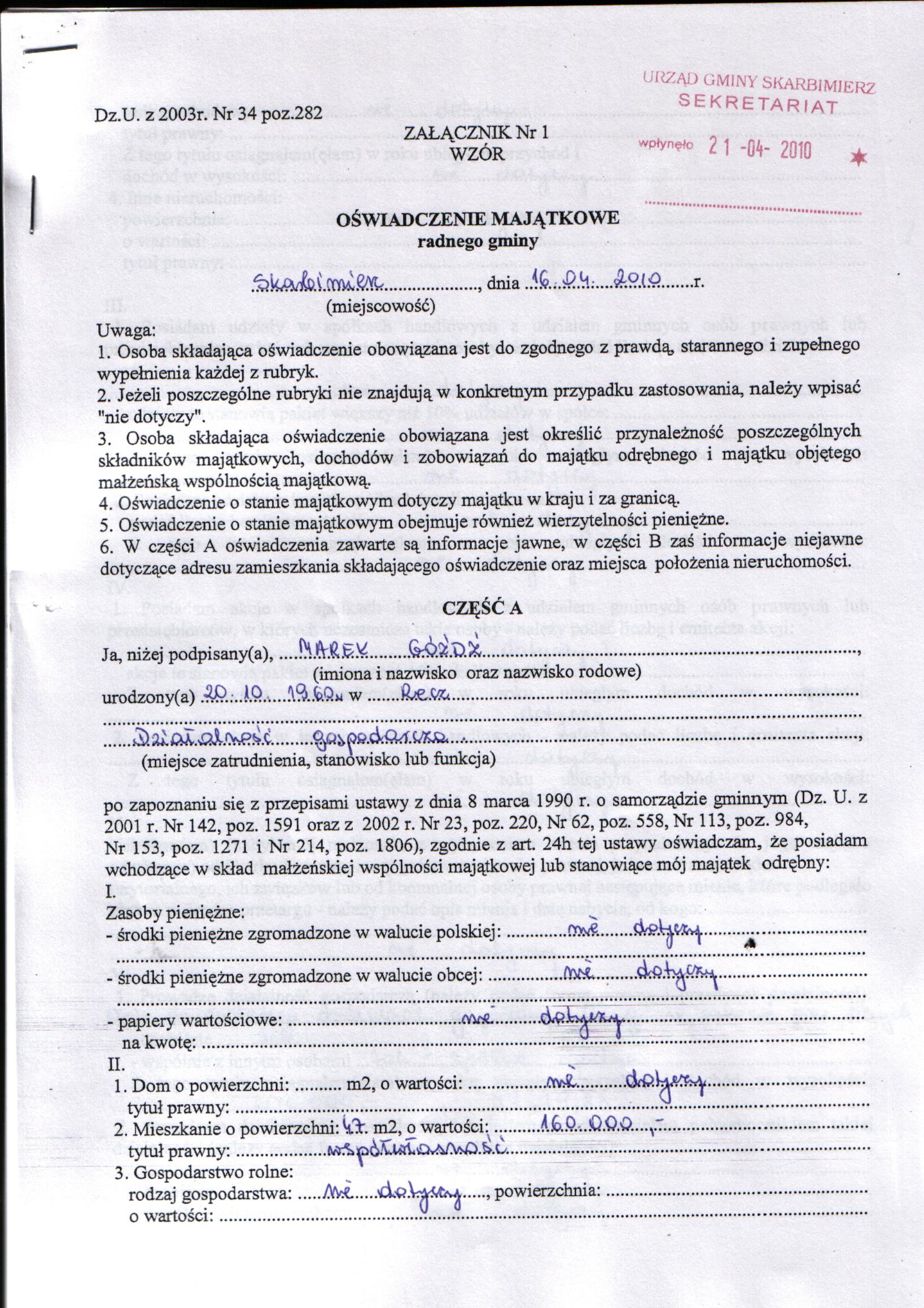 | Nazwa dokumentu: | Oświadczenie majątkowe str.1 |
