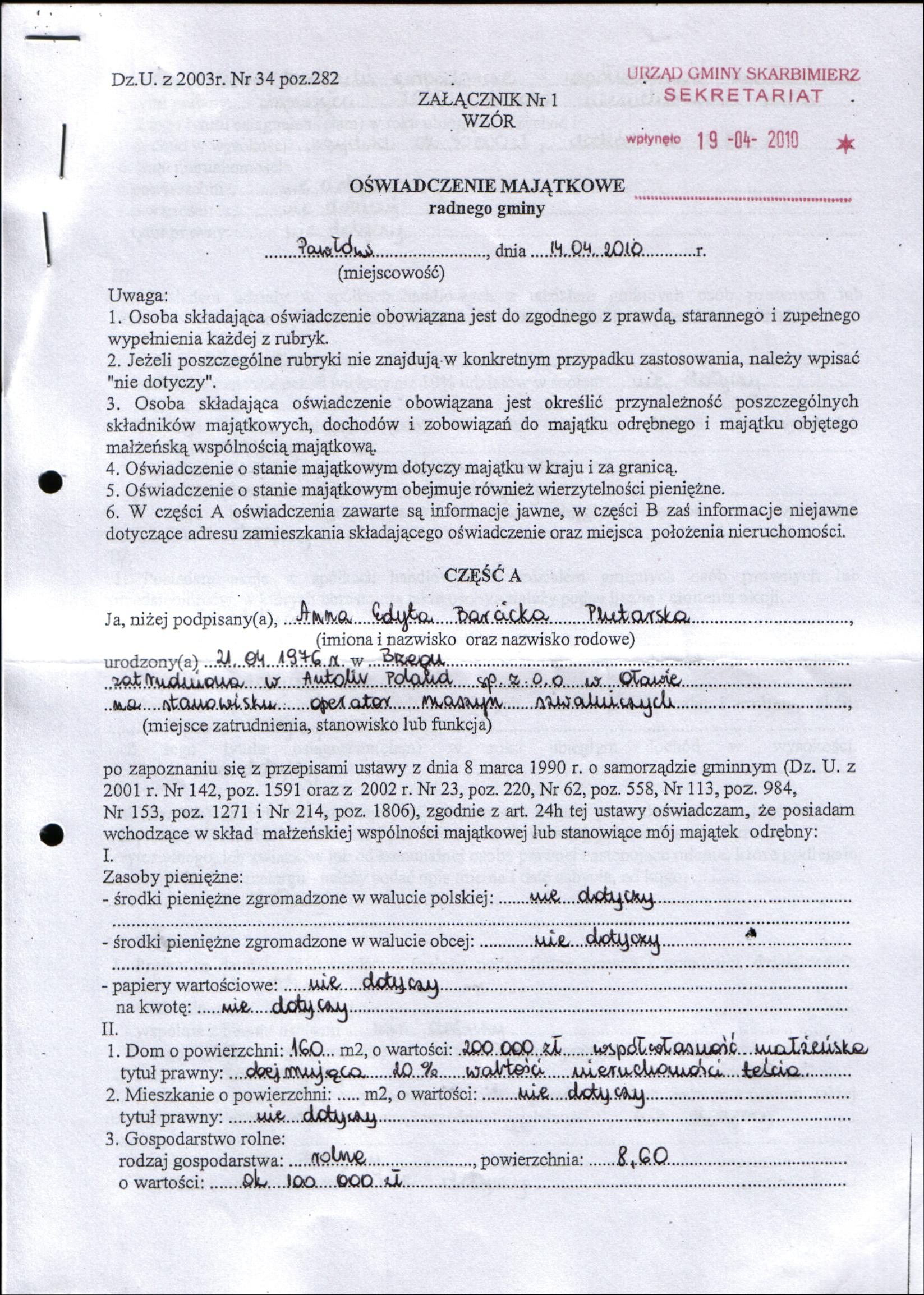 | Nazwa dokumentu: | Oświadczenie majątkowe str.1 |