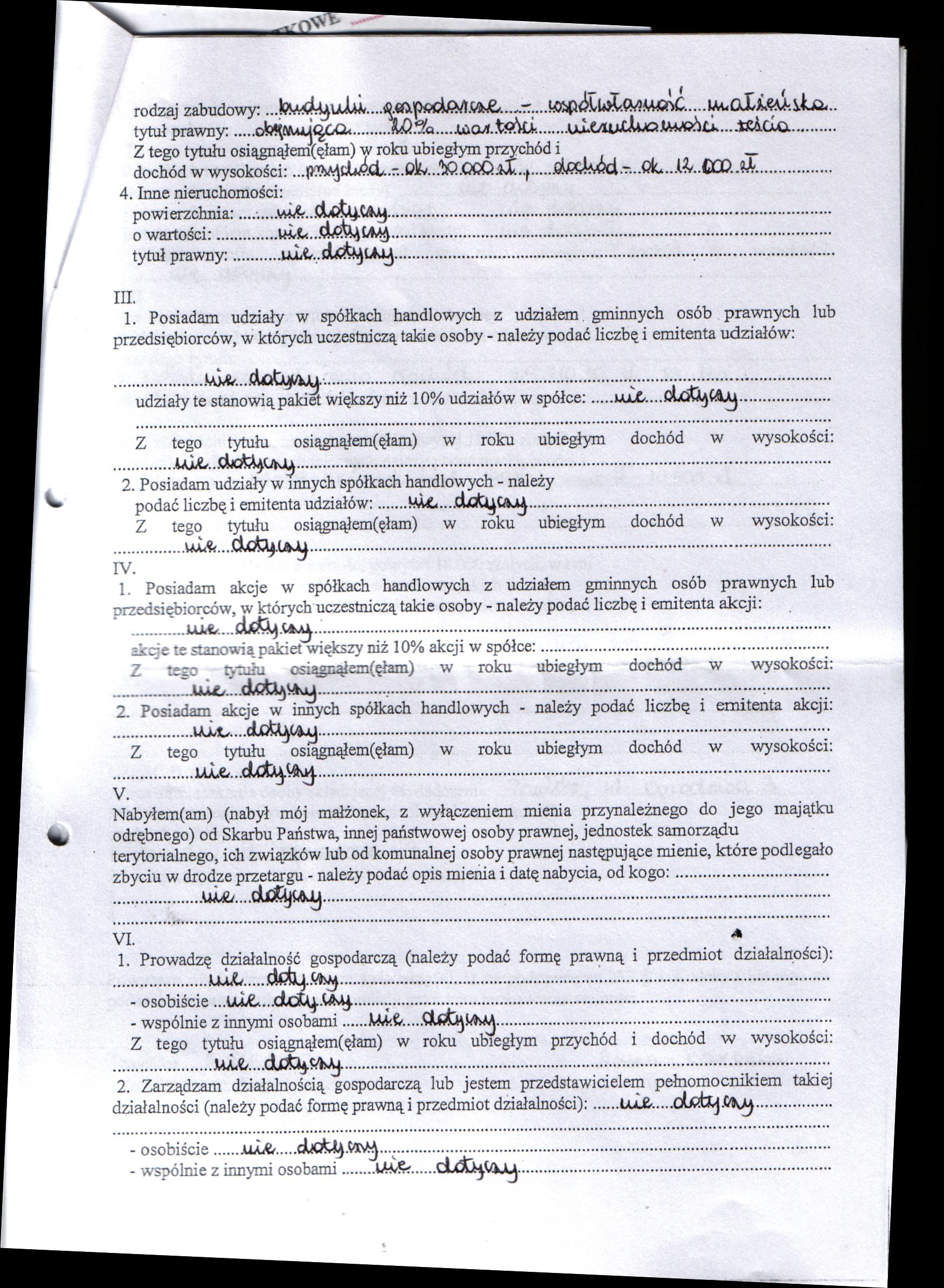 | Nazwa dokumentu: | Oświadczenie majątkowe str.2 |