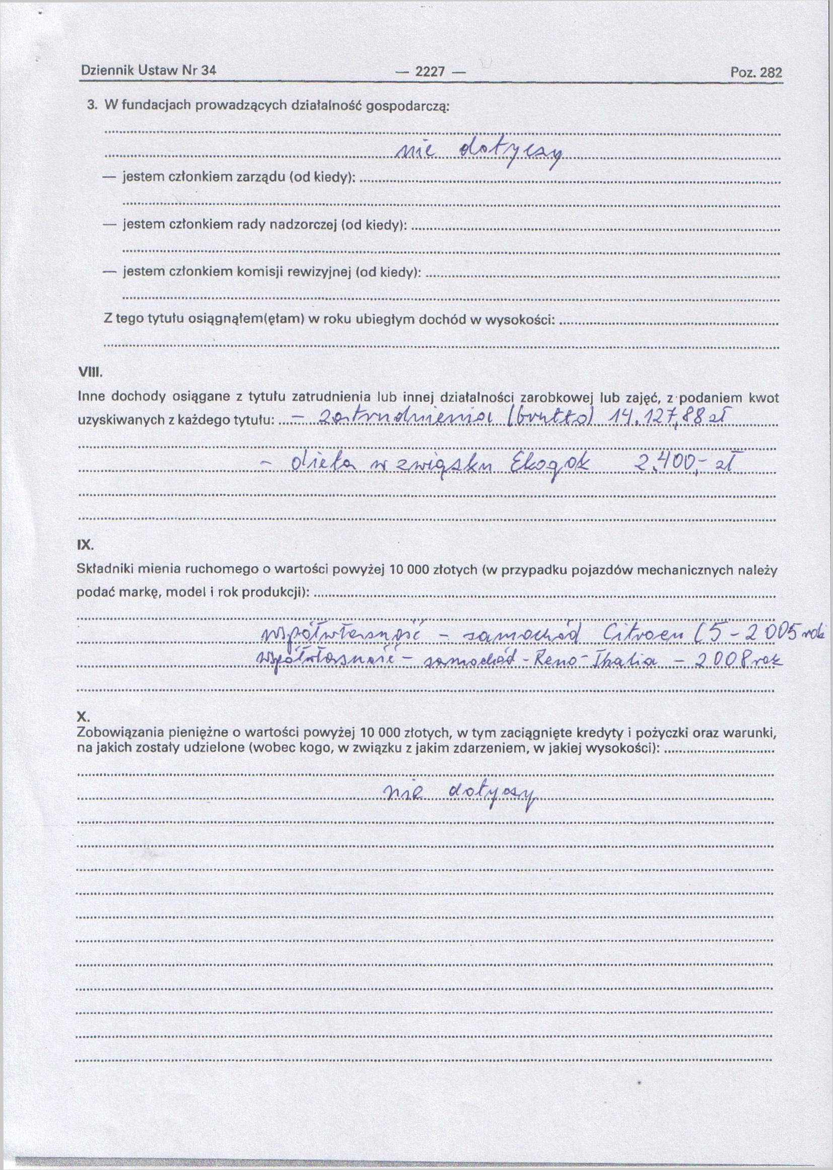 | Nazwa dokumentu: | Oświadczenie majątkowe Wójta za 2011r. |