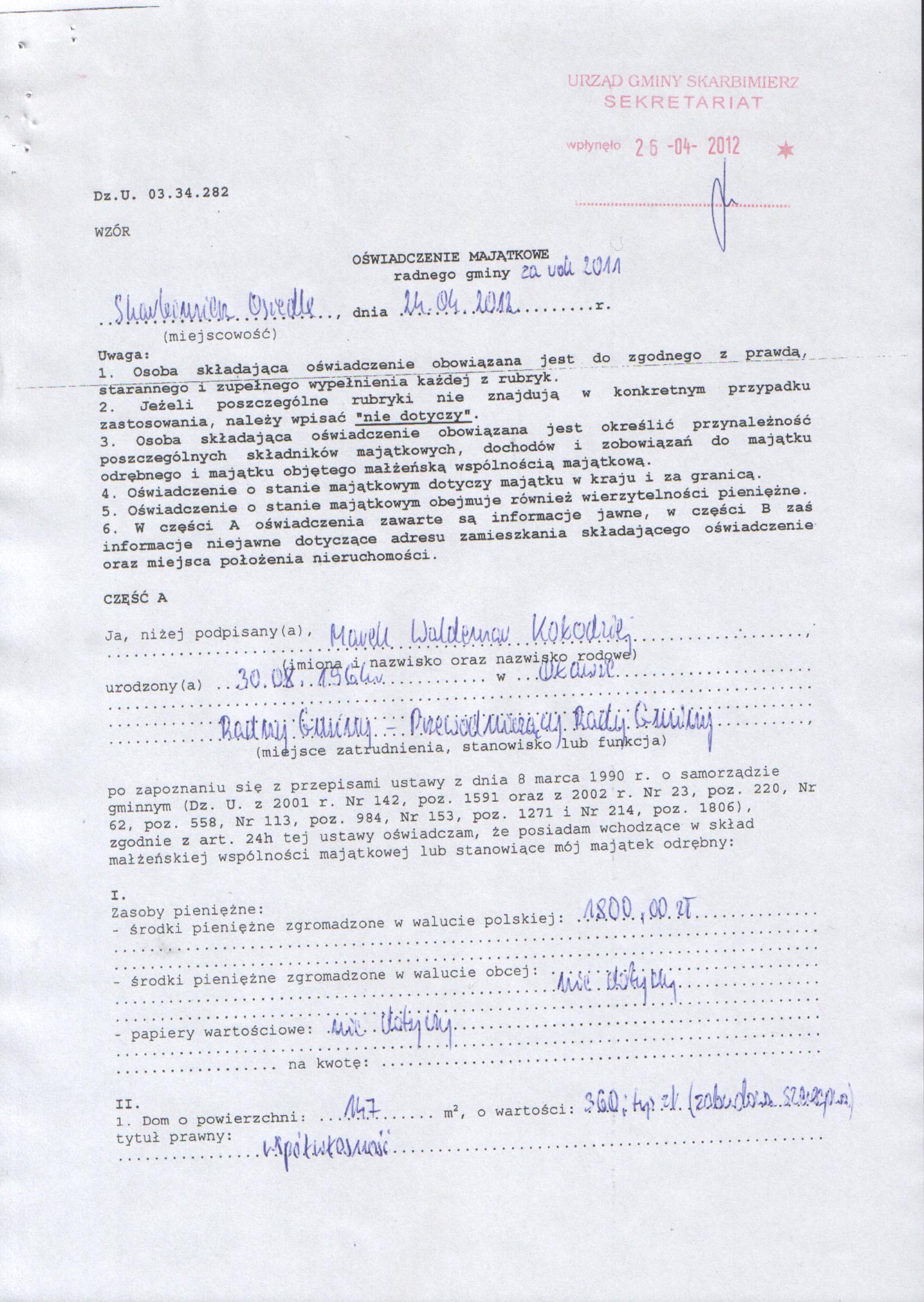 | Nazwa dokumentu: | Marek Kołodziej - Przewodniczący Rady Gminy |