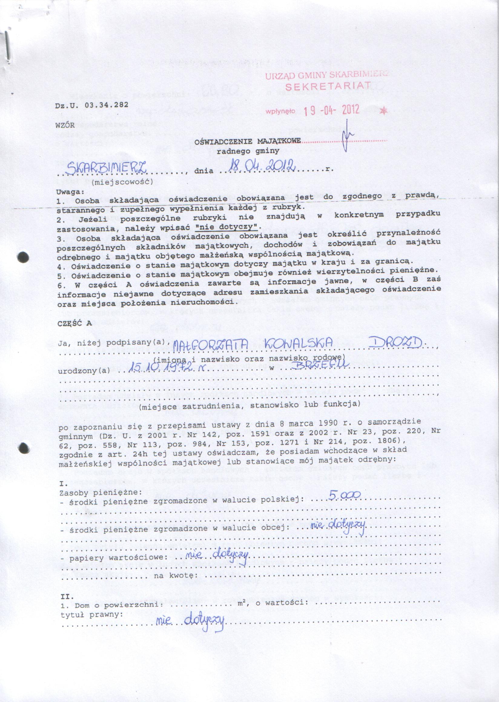 | Nazwa dokumentu: | Małgorzata Kowalska - radna |