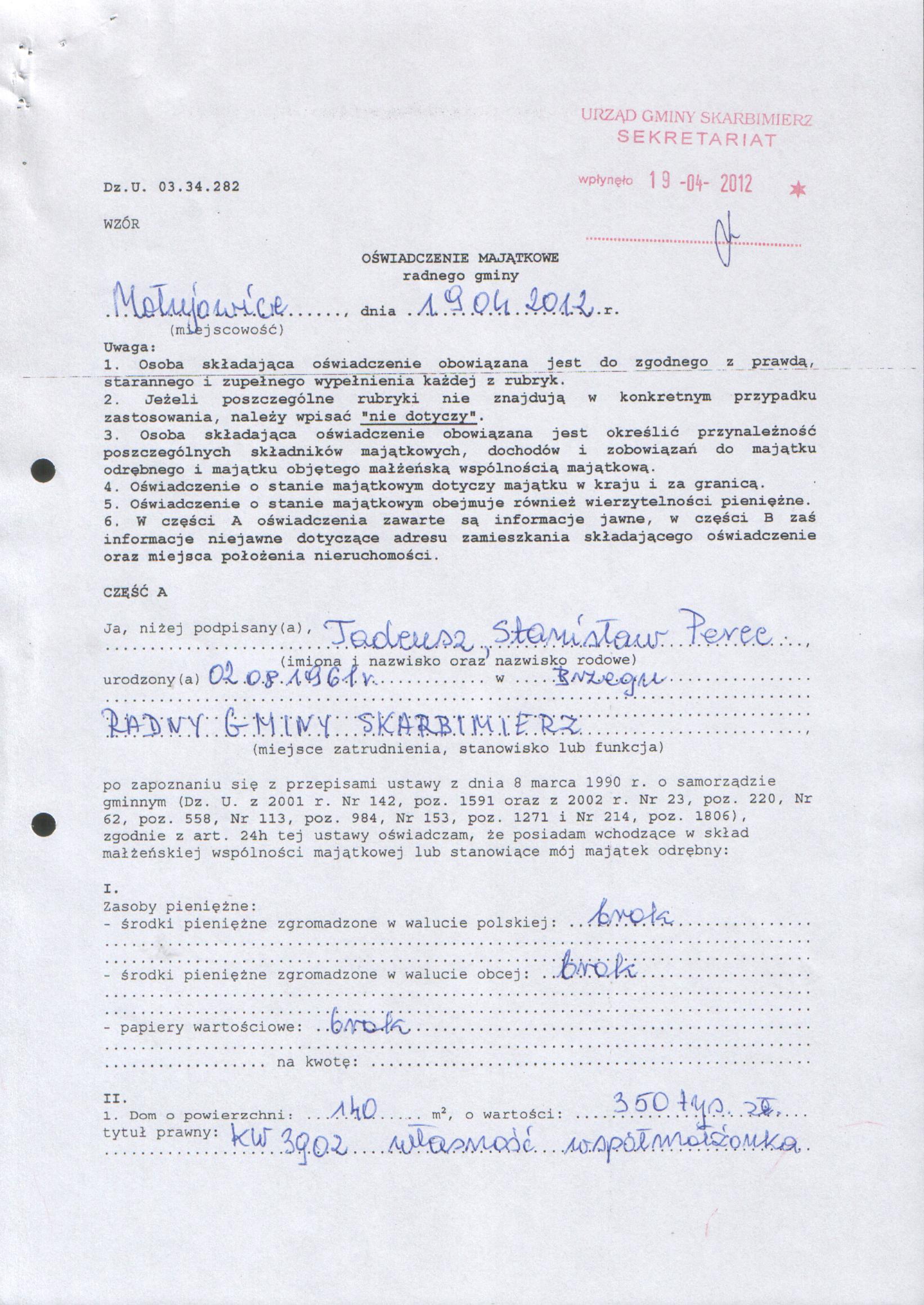 | Nazwa dokumentu: | Tadeusz Perec - radny |
